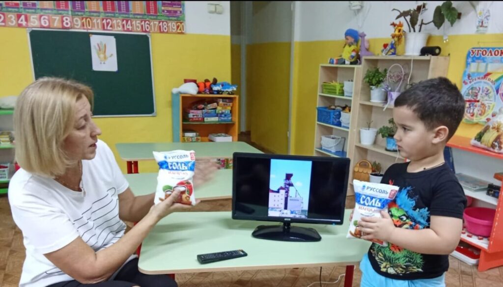 Профориентационный проект, который был рассчитан на детей старшего дошкольного возраста, познакомил детей с миром шахтёрских профессий, а также с предприятием ООО «Руссоль». Галина Валиевна провела с детьми занятие по познавательному развитию «В гости к Солёнушке», виртуальную экскурсию «Трудовые будни шахтёра», спортивное развлечение «Мы – шахтёры». Кроме того, дети учились рисовать солью «Салют на День шахтёра».